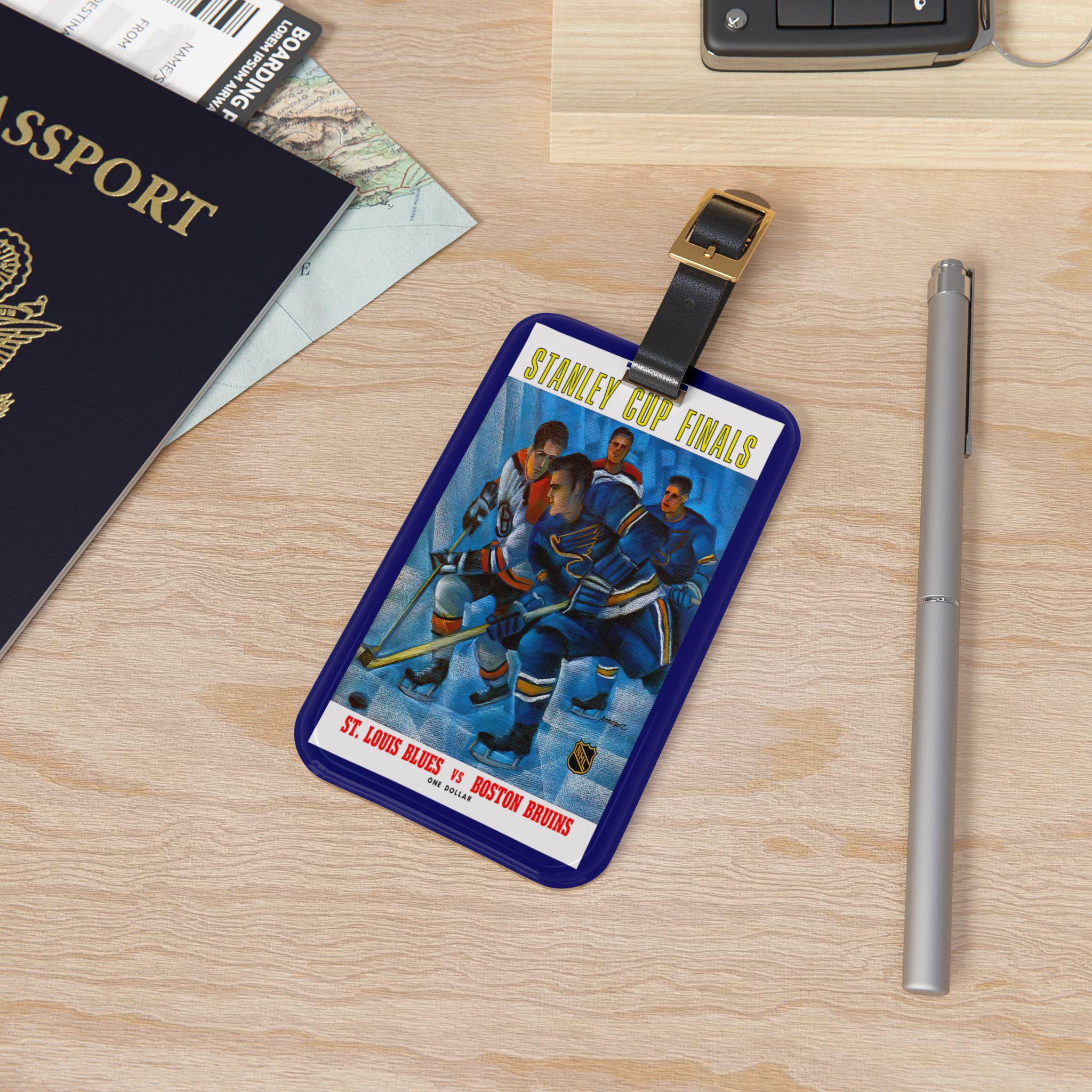 Carry a piece of vintage hockey history with you. This acrylic luggage tag echoes the gritty, electric energy of the 1969–1970 St. Louis vs. Boston era — bold typography and retro styling that feel like an old arena poster slipped into your bag. It lands perfectly on the corner of a duffel or roller case, adding a confident, lived-in character to your travel gear. The glossy print punches through the acrylic, so the colors stay lively after plane rides and airport baggage belts. An adjustable black leather strap secures the tag to handles, and a discreet rear pocket holds your contact card for easy identification. Whether you’re heading to a weekend rink visit or traveling to catch a vintage game, this tag announces your fandom without yelling for attention.