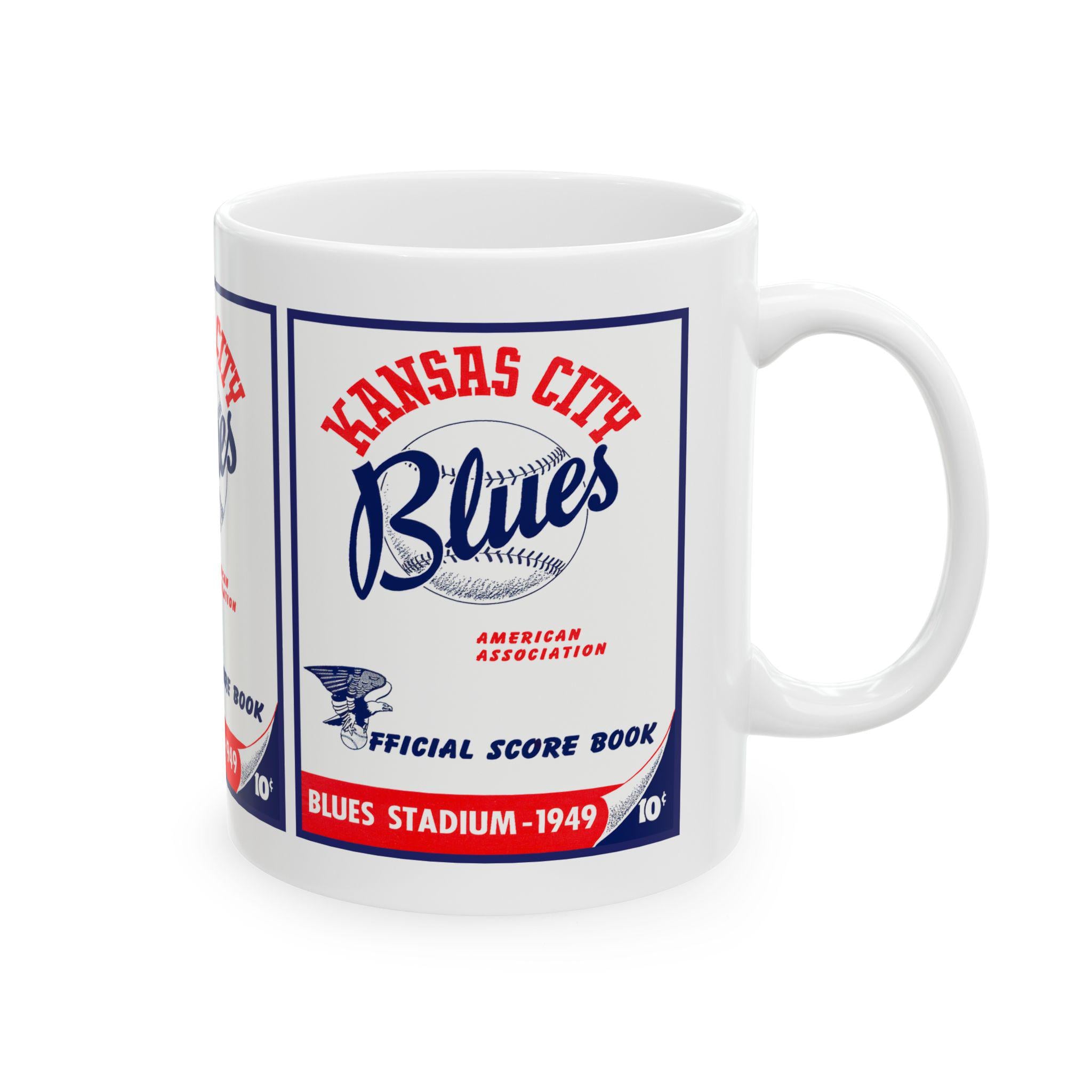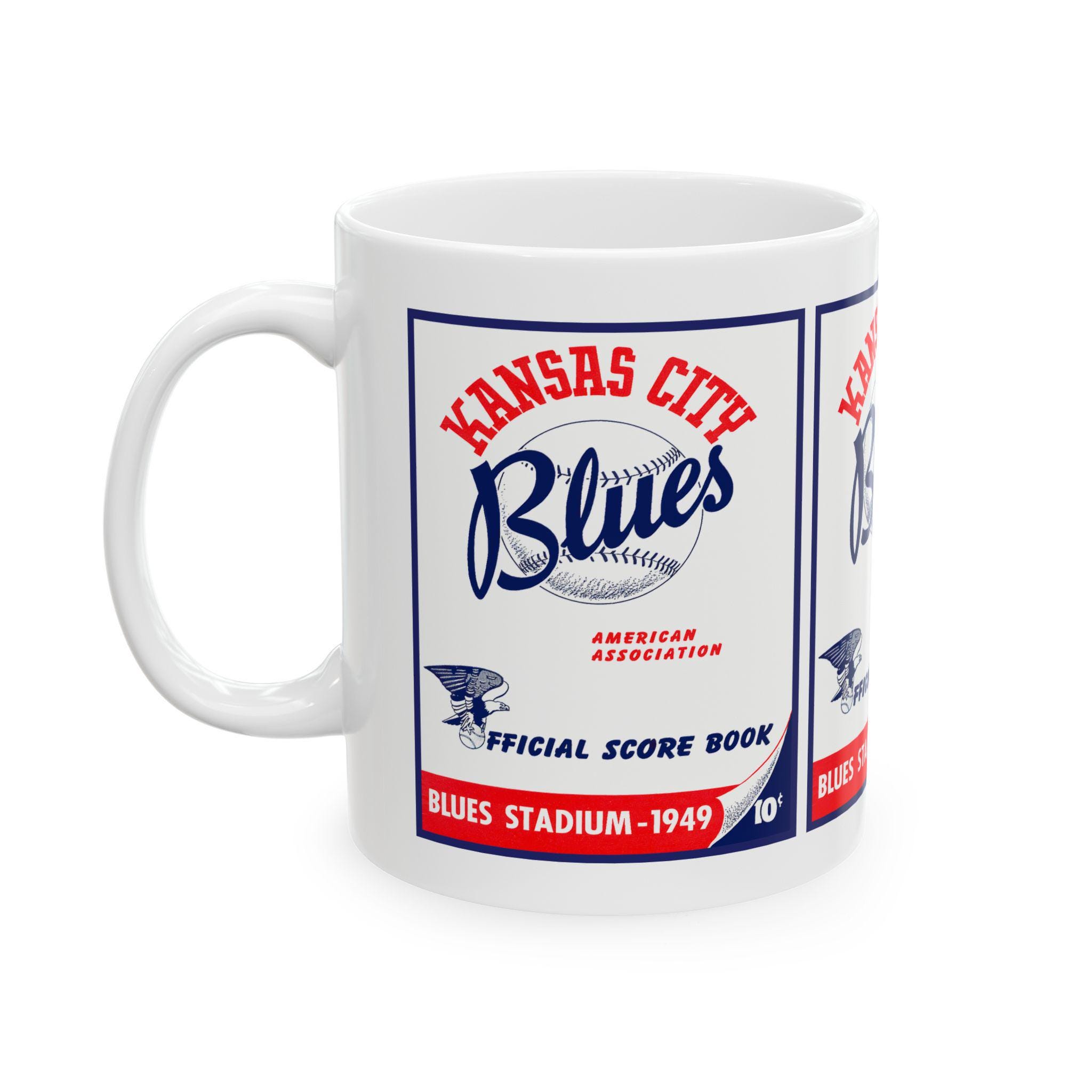 Pull up a chair and let the crack of the bat and the grainy radio announcer take you back. This ceramic mug carries the spirit of 1949 Kansas City Blues baseball—vintage team pride rendered in sharp, glossy detail. Warm coffee steams in a sturdy C-handle mug while you trace the retro lettering and imagine afternoons at the ballpark: sun on the seats, peanuts in paper bags, and conversation about the next big play. It’s made for anyone who keeps baseball lore alive—collectors, local historians, and fans who like their morning brew with a side of nostalgia. The vibrant print stays true wash after wash, and the comfortable handle makes it simple to sip while you leaf through old box scores or watch classic game clips. Whether you’re settling into a quiet morning or swapping stories with fellow fans, this mug brings a little clubhouse history to your table.