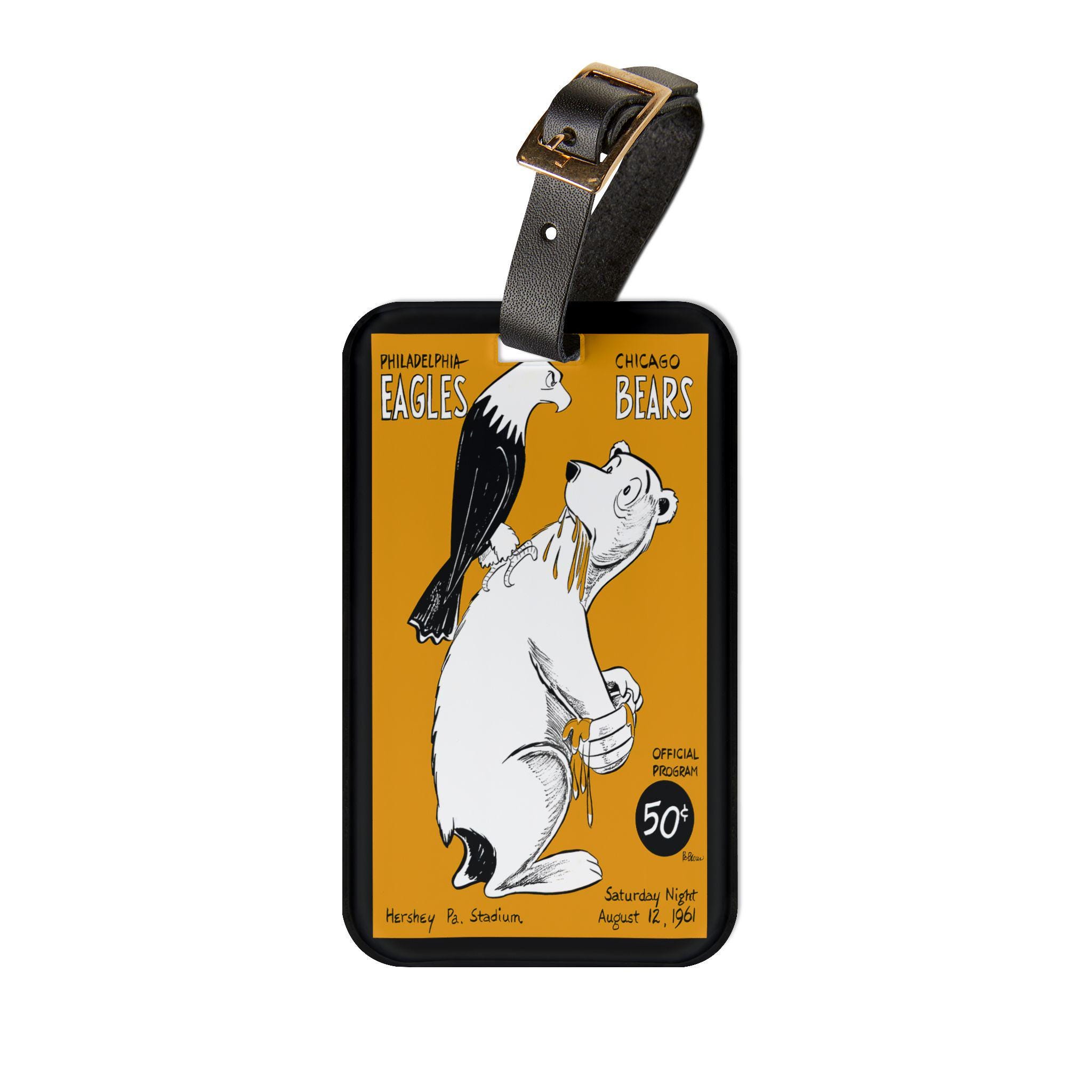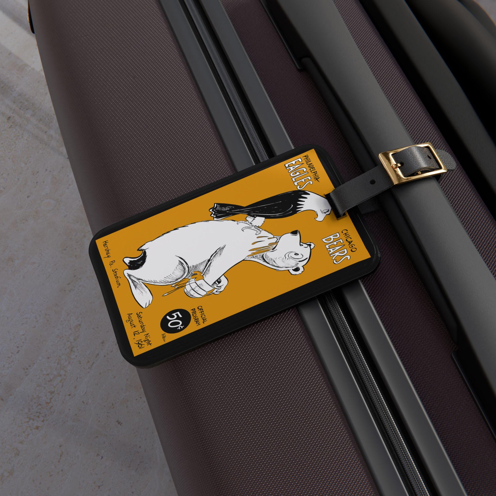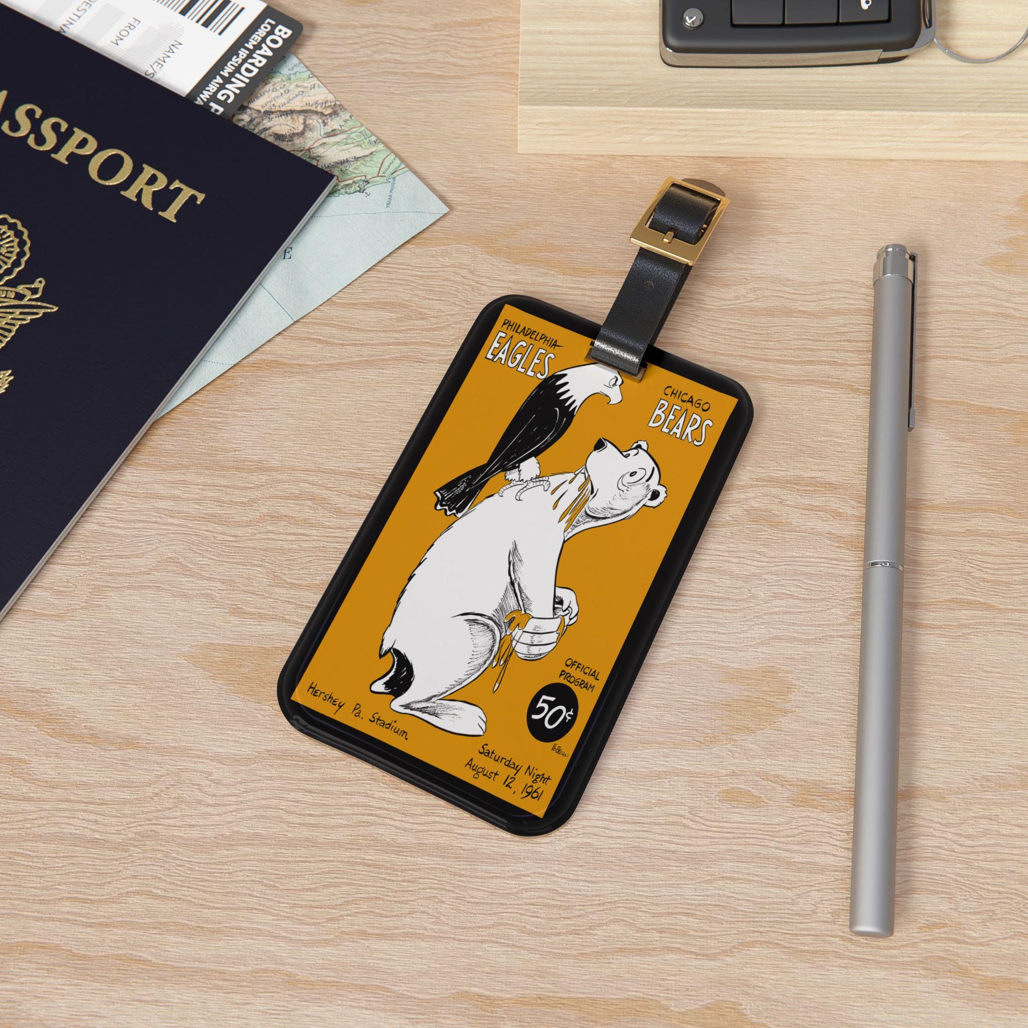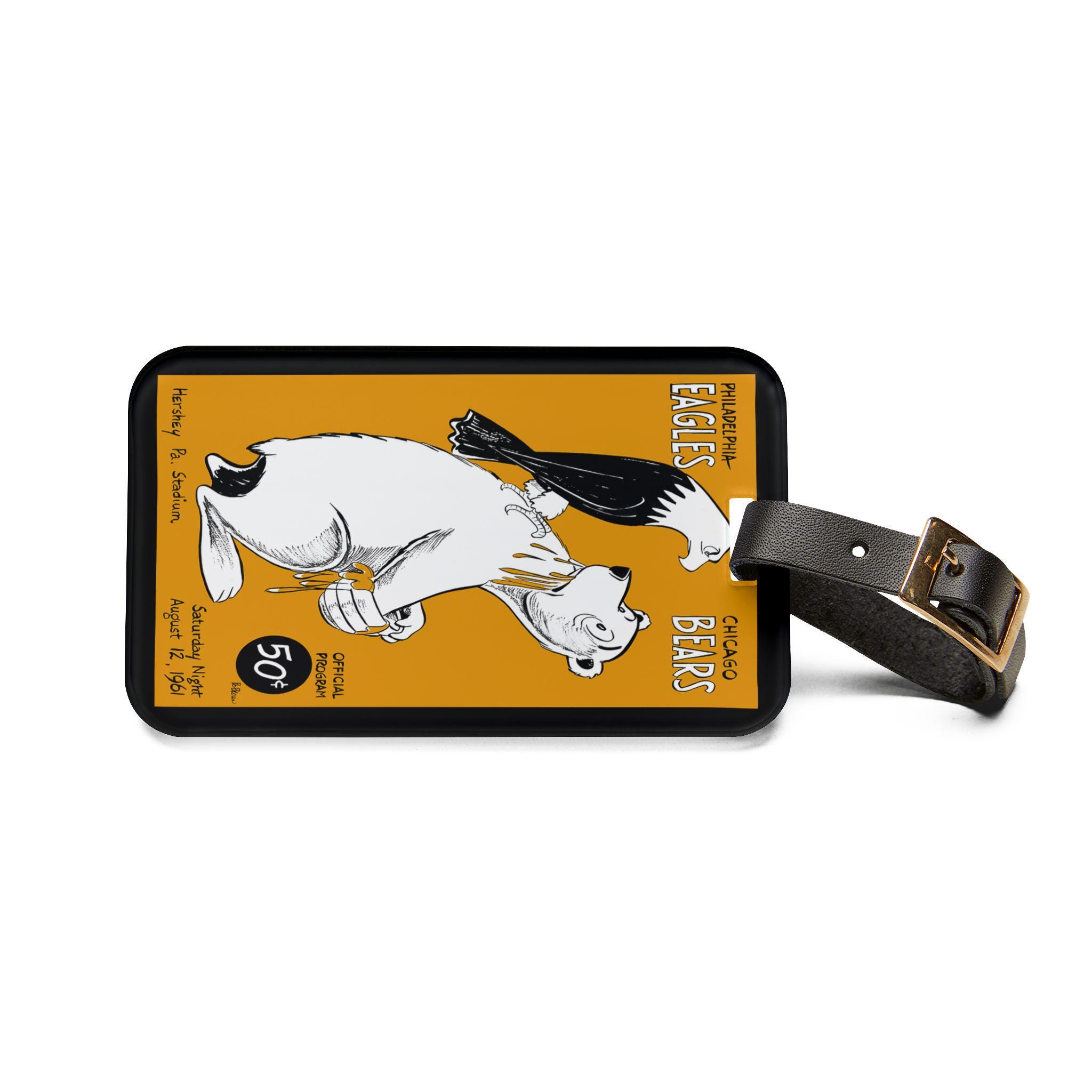 Stamped with the grit of a 1961 gridiron clash between Philadelphia and Chicago, this luggage tag carries a piece of sports history wherever you go. The bold, vintage team reference and crisp printed graphic make it easy to spot your bag at the carousel and start conversations with fellow fans. It slips onto carry-ons or weekend bags with an adjustable black leather strap and tucks a business card into the rear opening for quick identification. The glossy finish and vibrant inks keep the colors alive, while the durable acrylic body stands up to travel’s knocks and scuffs. Bring a little stadium energy to your trips and let your bag wear its fandom loud and proud.