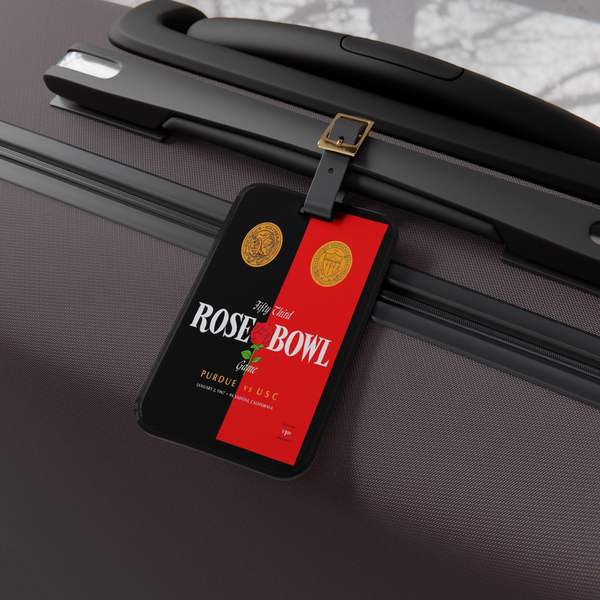 Stamped with the spirit of January days at the Rose Bowl, this luggage tag carries a pocket of sports history wherever you go. The single-sided print reads like a small poster: bold, vintage game energy and the date 1967 bring back the roar of the crowd and chilly stadium air. Clip it to a worn duffel or a commuter backpack and let it anchor your bag in memory and motion. The glossy finish makes the colors pop against canvas or leather. A discreet rear pocket holds your contact card so your gear can find its way back after long weekends, road trips, or flights to watch classic games or tailgate with friends.