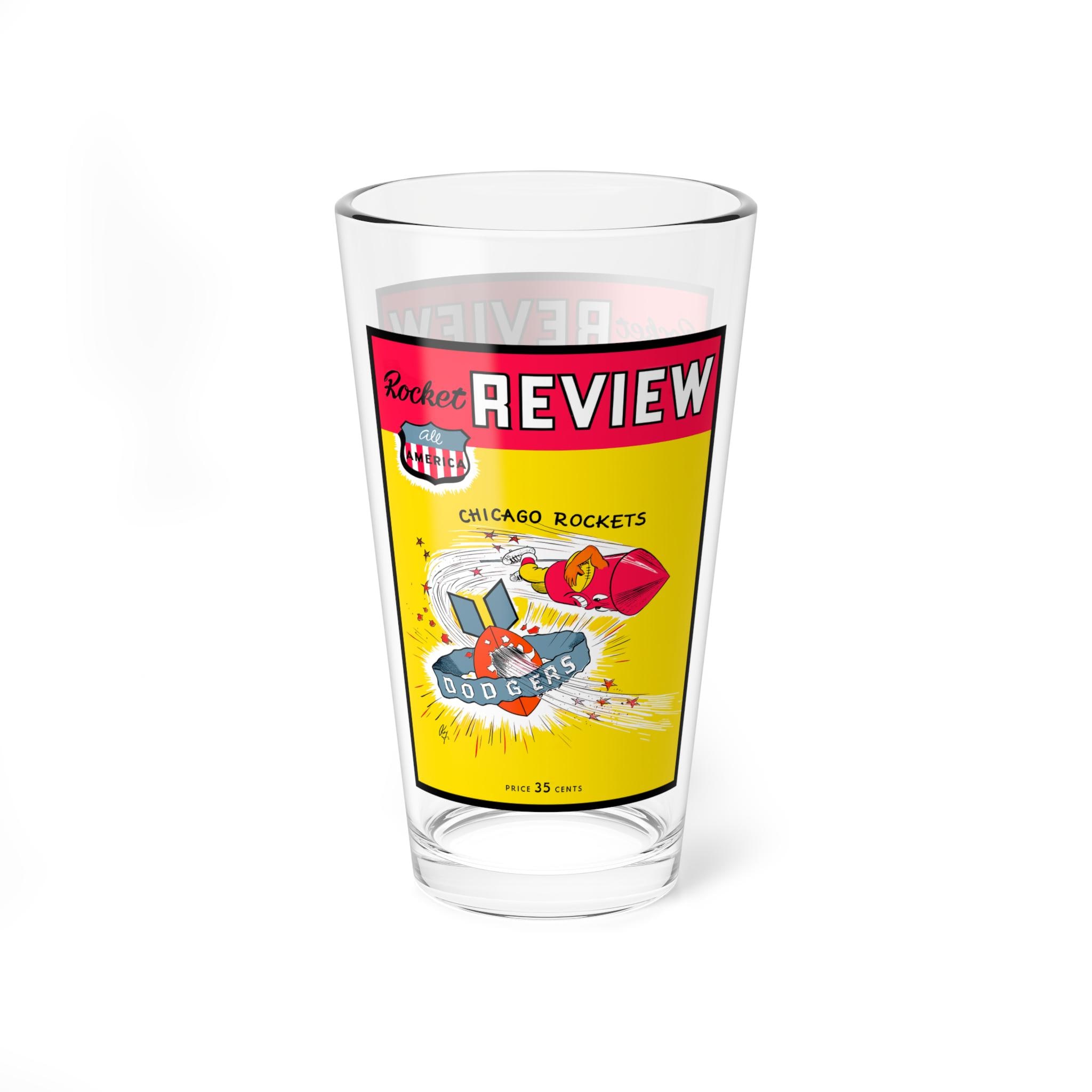 This 16oz mixing glass brings stadium grit and vintage gridiron spirit to your home bar. Printed with bold 1948 football-era lettering referencing Brooklyn Dodgers and Chicago Rockets, it carries the look of mid-century rivalries—faded-yardline energy reimagined in vivid, modern inks. Hold it up to the light: the clear glass and heavy solid base feel substantial, steady in your hand while you stir a classic cocktail or sip a cold beer. The durable construction and dishwasher-safe finish make it an easy part of game-day routines or late-night conversations about old teams and lost seasons. For fans who collect sports ephemera or anyone who loves retro football style, this glass adds character to a bar cart, kitchen shelf, or display case, and its versatile use as both a drinking vessel and a mixing glass keeps it in regular rotation.