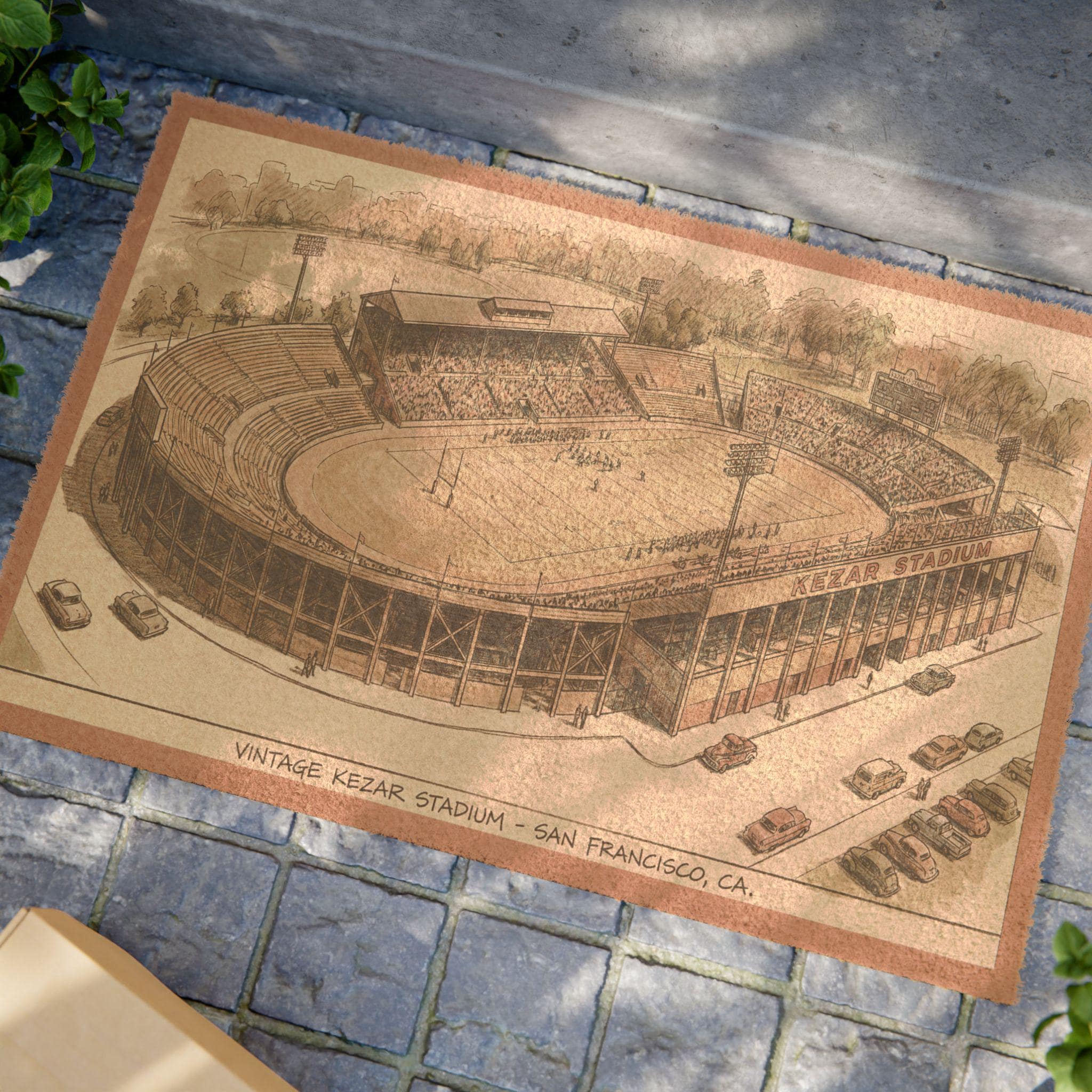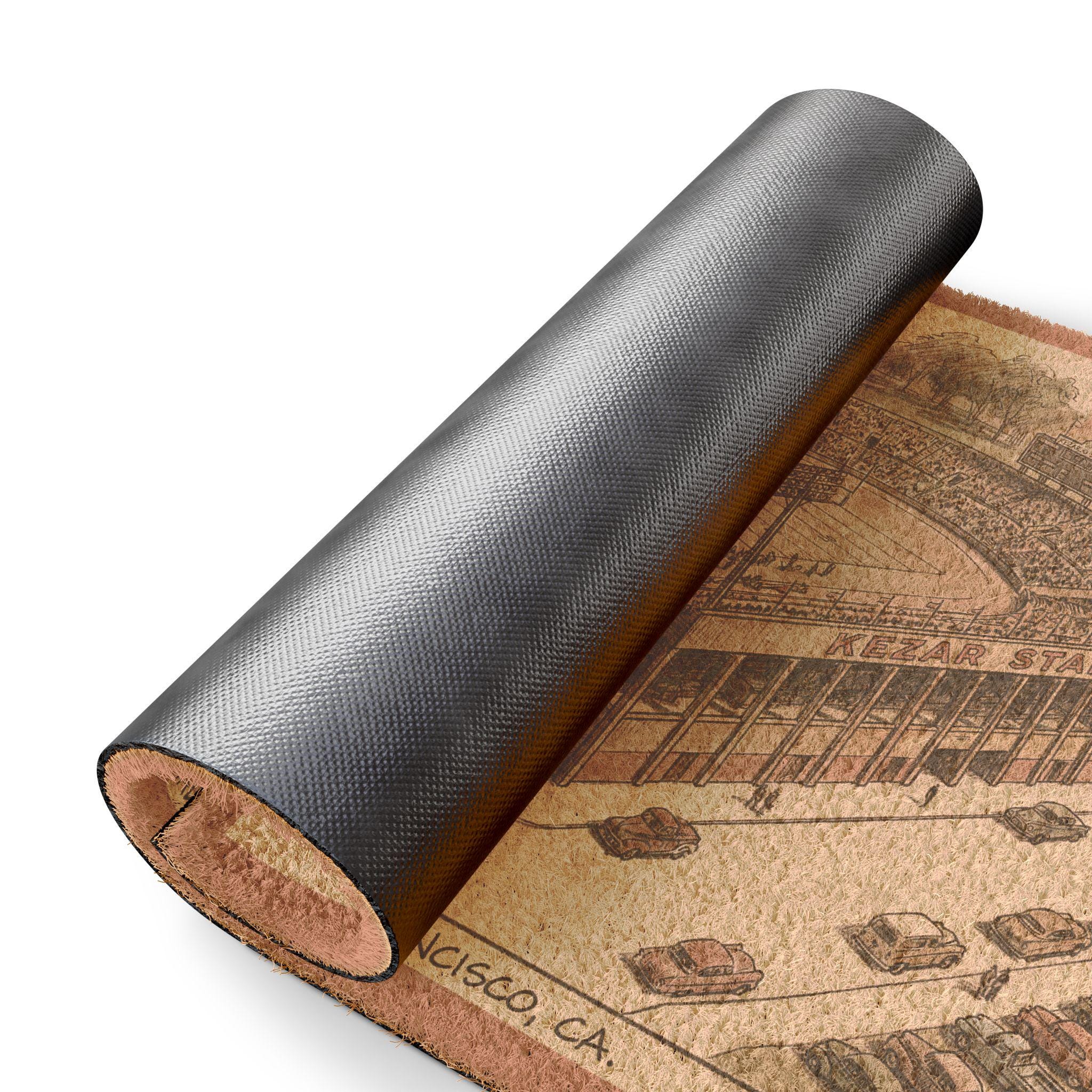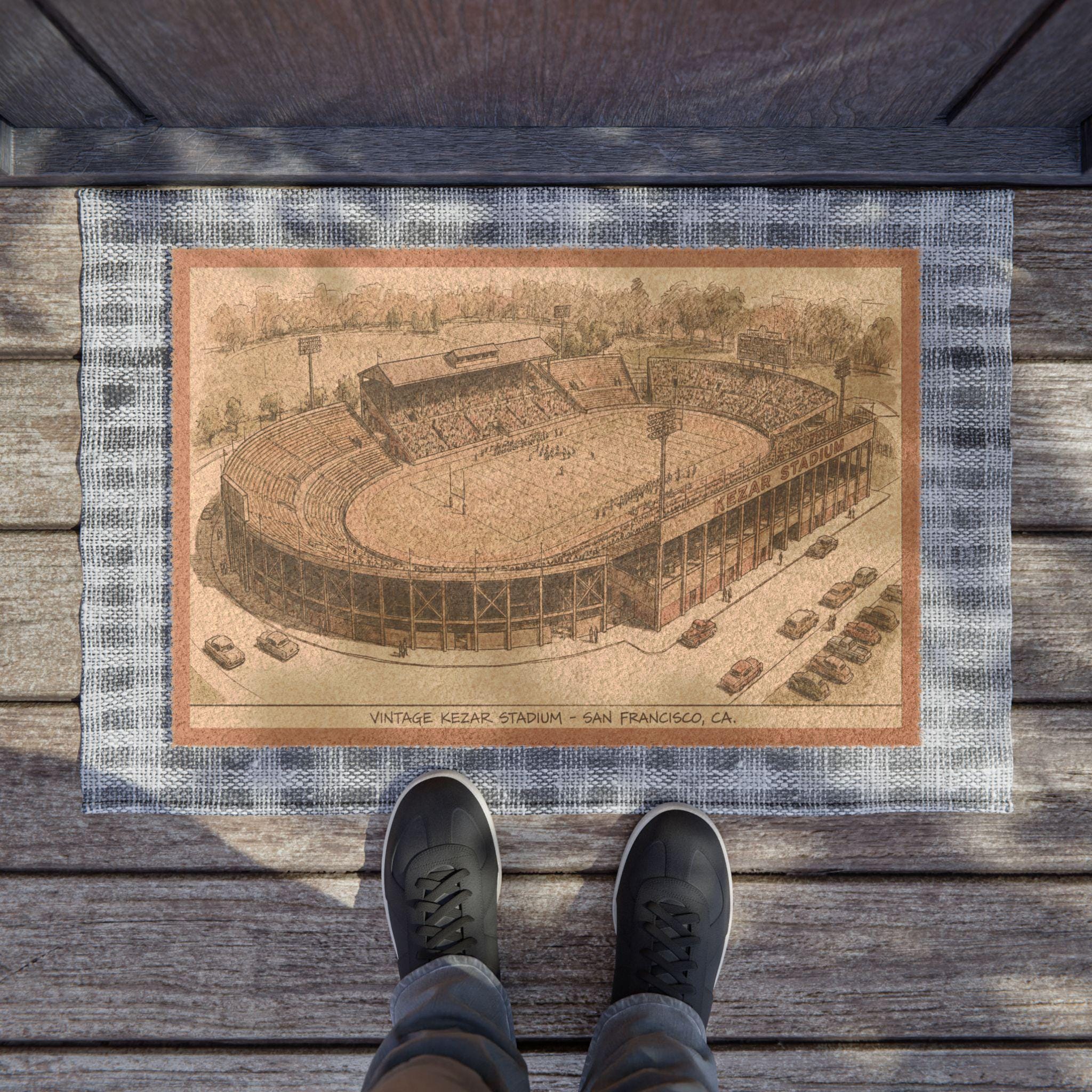 This sturdy coir doormat channels the faded glory of Kezar Stadium — sun-warmed turf, cheering crowds, and that unmistakable San Francisco grit. Laid across a front step or leaning against a mudroom wall, it greets visitors with vintage football charm. The rough coconut fibers scrub off boots after a rainy game-day walk, while the weathered stadium vibe hints at long afternoons spent in seats and the smell of leather and grass. It settles into the routine of a fan’s home: arriving with game-day energy, wiping away the city’s fog, and staying reliably grounded season after season. Built for outdoor thresholds and made with practical details, it speaks quietly to people who love the game and the place it grew up in.